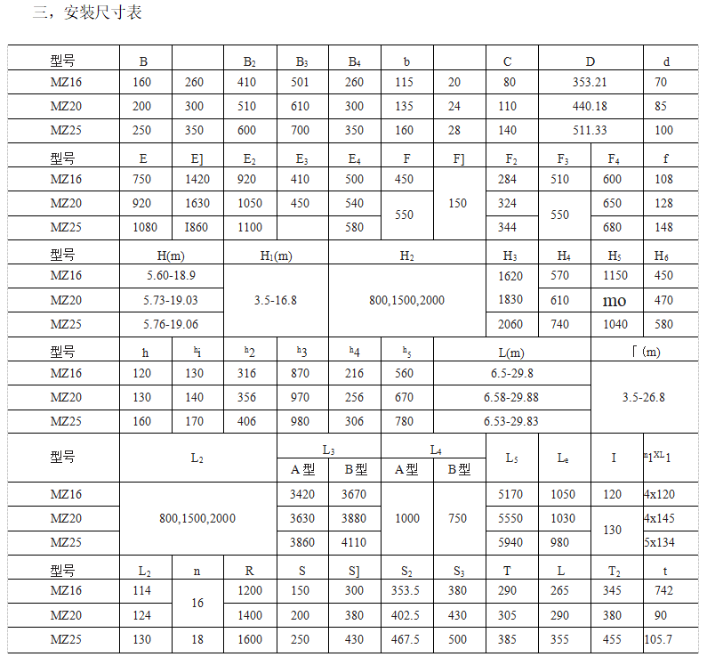 二,技术性能表